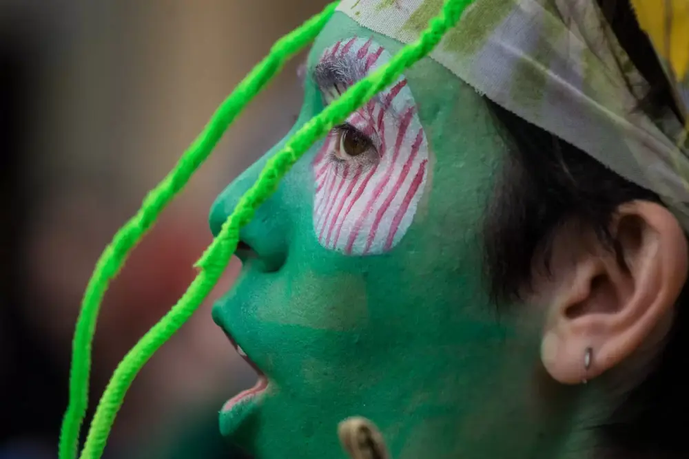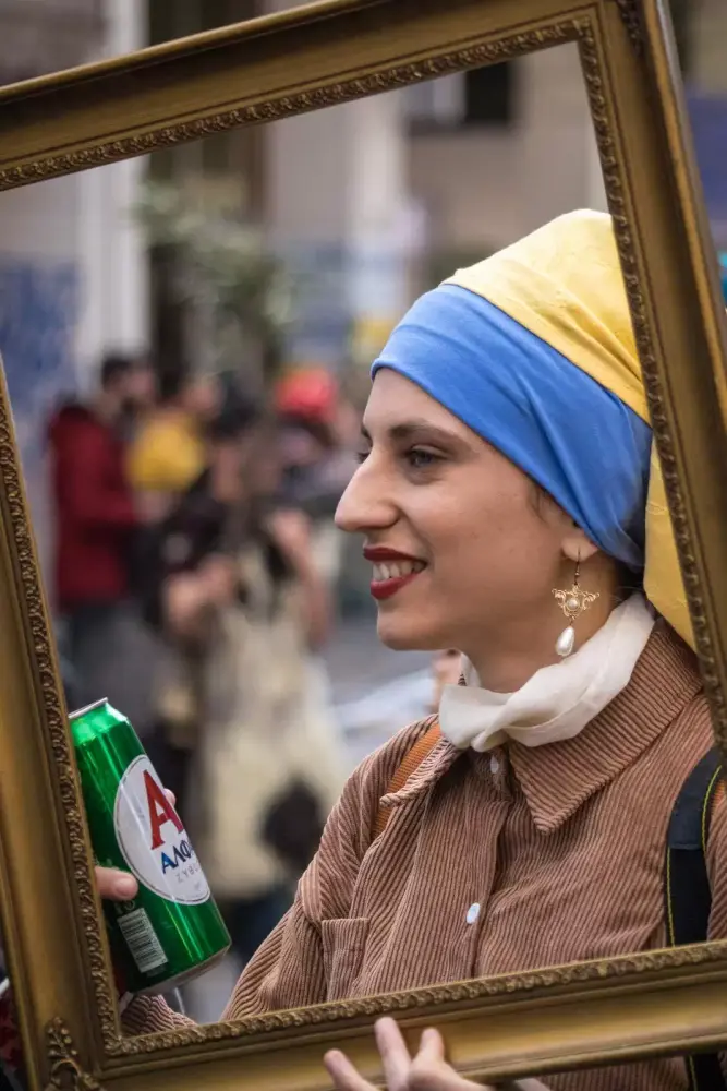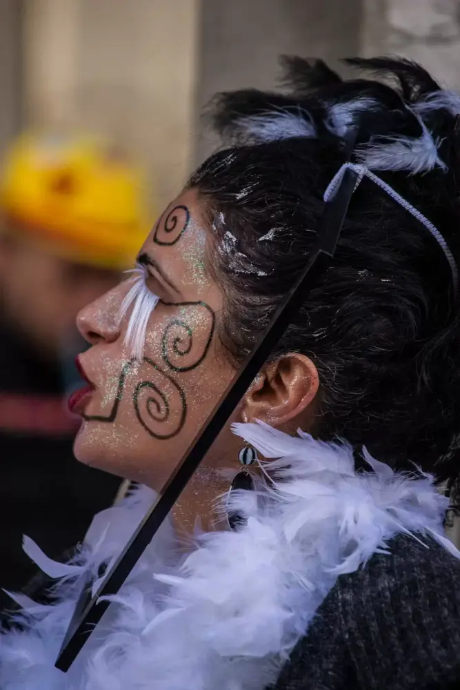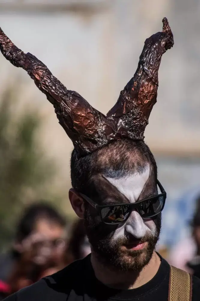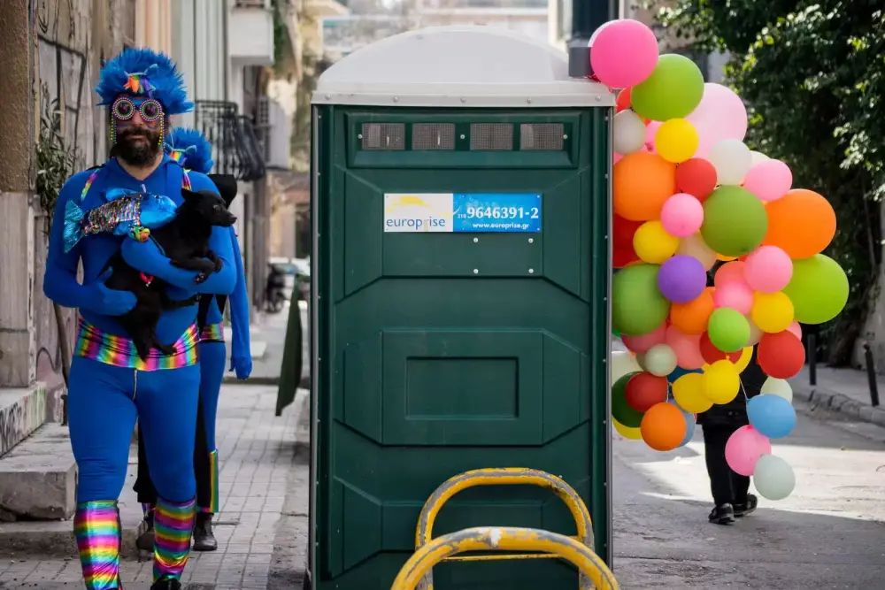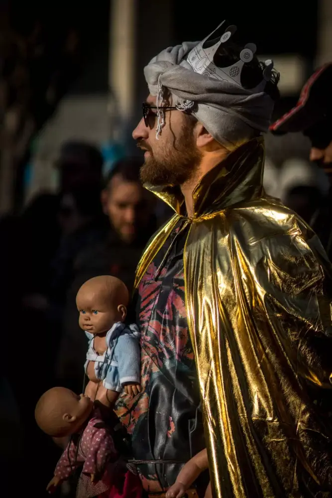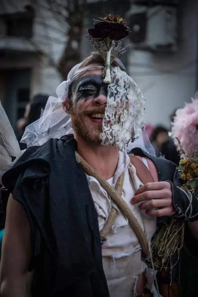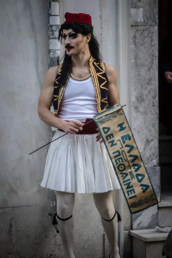 Και ξαφνικά μέσα σε αυτή την δυστοπία έρχεται μια μέρα του χρόνου που μπορούμε να – επαναστατήσουμε, να καταργήσουμε τις συμβάσεις και να παρουσιαστούμε δημοσίως ρίχνοντας πάνω μας ό,τι πιο ακραίο και αντισυμβατικό βρούμε τριγύρω μας. Μεταμορφωνόμαστε, γινόμαστε κάτι άλλο, κάποιοι άλλοι. Πιο τολμηροί, επινοητικοί, χαρούμενοι, γεμάτοι αυτοπεποίθηση. Αναστέλλουμε τους αυτοπεριορισμούς για λίγο. Για πολύ λίγο. Μόλις φύγει η περούκα και η μπογιά από το δέρμα δυστυχώς θα ενδυθούμε ξανά το ενδυματολογικό μας διαβατήριο του “φαίνεσθαι”, κλειδώνοντας για ένα χρόνο το “αισθάνεσθαι” βαθιά, στο κάτω συρτάρι της καθημερινότητας.